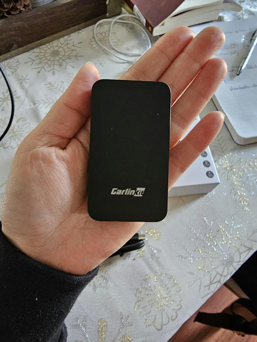 Das Carlinkit 2air wurde so konzipiert, dass es klein, kompakt und unauffällig ist. Sein Gehäuse besteht aus haltbarem ABS+PC und ist in einem eleganten Schwarz gehalten. Das Gerät kann vertikal in der Mittelkonsole aufbewahrt oder mit Klettverschluss im Handschuhfach befestigt werden und nimmt so nur wenig Platz in Ihrem Auto ein. An der Seite des Gehäuses befinden sich Belüftungsöffnungen, die eine Überhitzung während des Gebrauchs verhindern.